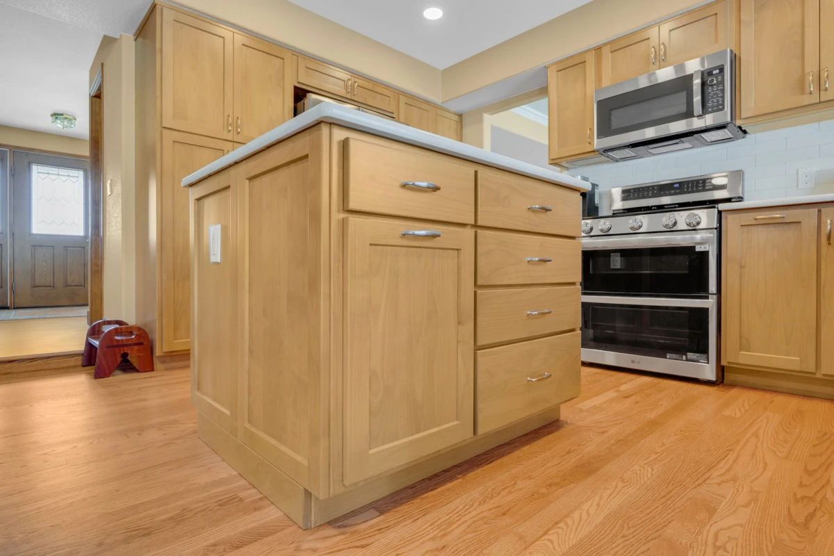 We had the pleasure of transforming this Desiree kitchen into a bright, modern, and functional space. This remodel features beautiful wood cabinets accented with sleek silver hardware for a touch of contemporary elegance. Clean white countertops enhance the light, open feel of the room, perfectly complemented by crisp white backsplash tiles. Abundant natural light floods the space, creating a warm and inviting atmosphere ideal for both everyday living and entertaining. This kitchen is a perfect blend of timeless design and practical comfort.